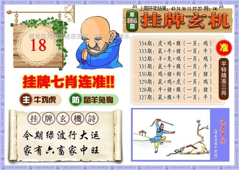 | 334期七肖 | 狗牛猴猪鼠兔羊 | 开:猴46 |
